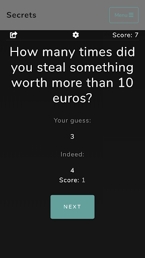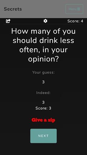 Once everyone has submitted their answer and guess, the actual average is displayed and players receive their points. Depending on how you have cut off, you may distribute sips or you must drink yourself. Of course, nobody knows what value the individual players have actually given - after all, it is supposed to remain a secret.