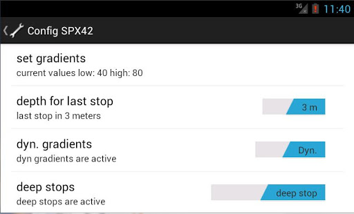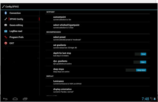 Full version of the Android app for the SUBMATIX SPX42 dive computer