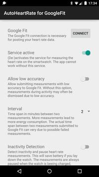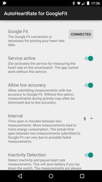 This app allows users of an Android Wear Smartwatch to regularly measure and submit their heart rate to Google Fit (fit.google.com). The Android Wear Smartwatch needs a heart rate sensor (e.g. Samsung Gear Live, LG G Watch R, Motorola 360, ...) to be compatible to this app.
