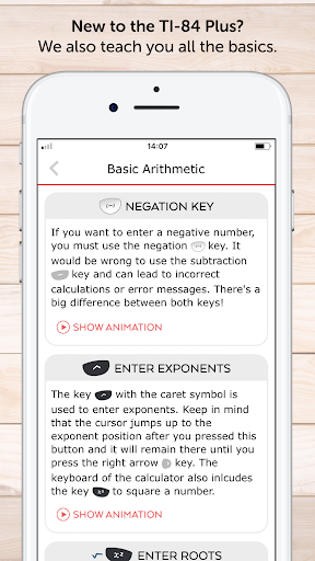 • The app guides you with easy to understand explanations and offers the ability to show animations. It's like your virtual teacher.