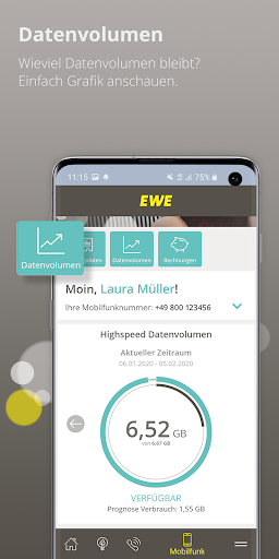 Unkompliziert Energieabschlag ändern, Rechnungen oder mobiles Datenvolumen checken. Das, und einiges mehr, können Sie mit der App „Mein EWE 2.0“!
