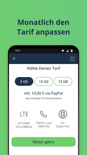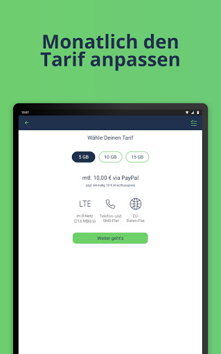 • 5, 10 oder 15 GB LTE-Tarif, mtl. anpassbar