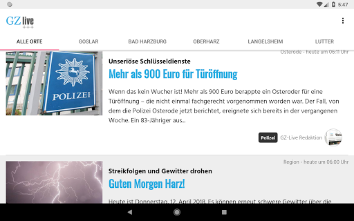 Mit dem Nachrichten-Ticker der Goslarschen Zeitung immer top informiert, wenn es um News aus dem gesamten Harz und speziell aus dem Landkreis Goslar mit den Städten und Gemeinden Bad Harzburg, Seesen, Braunlage, Clausthal-Zellerfeld, Liebenburg, Langelsheim und Lutter geht. Nachrichten aus Politik, Wirtschaft, Sport sowie Polizei- und Feuerwehrmeldungen werden den ganzen Tag über geliefert. Ebenso wie Tipps zu Veranstaltungen und Reisen im Harz. Immer brandaktuell und kostenlos.