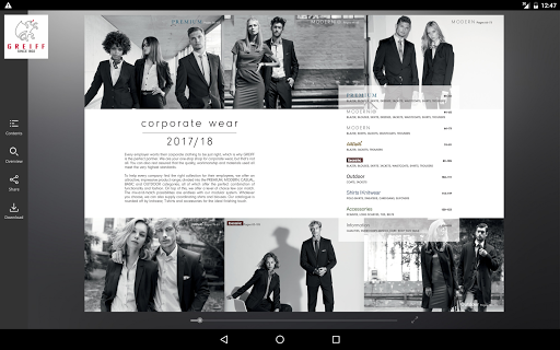 Mit dieser App haben Sie immer einen kompletten Überblick über das aktuelle Produktangebot von GREIFF zur Hand. Die digitalen Kataloge für GREIFF CORPORATE WEAR und GREIFF GASTRO MODA bieten Ihnen neben allen Produktinformationen auch Tools wie Lupen- und Galeriefunktionen. Einen lebendigen Eindruck verschaffen kurze Videos, die zu allen Kollektionsteilen zur Verfügung stehen.