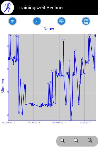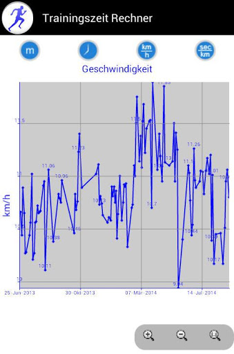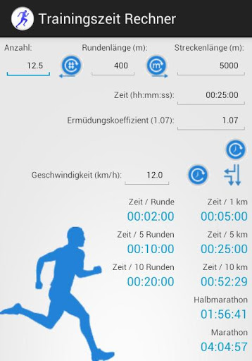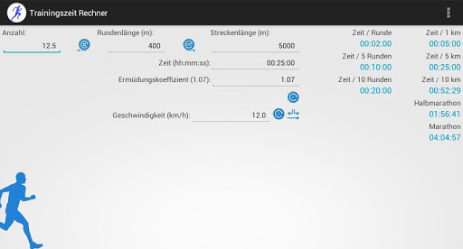 Based on the length of the running track and the time needed for it the app calculates the times for one, five and ten kilometers, and for the half and full marathon.