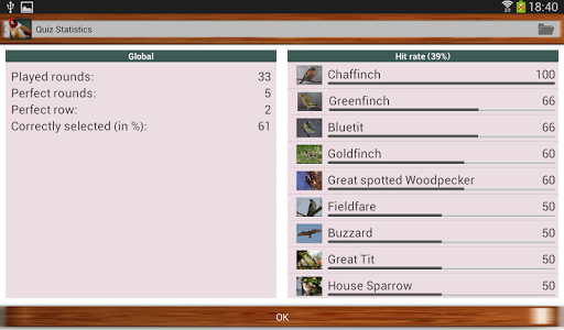 All functions together make the app a personal bird trainer, which can be well used to improve one's skills in identifying birds. The info and wiki features make the Birdquiz to a small but fine reference book.