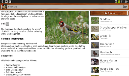 The Birdquiz is an app for identifying central european birds and for the training of bird calls.