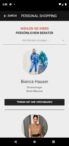 3.Staff Shopping: Você quer conselhos exclusivos?Basta selecionar seu consultor de desejo via aplicativo e organizar sua consulta pessoal.