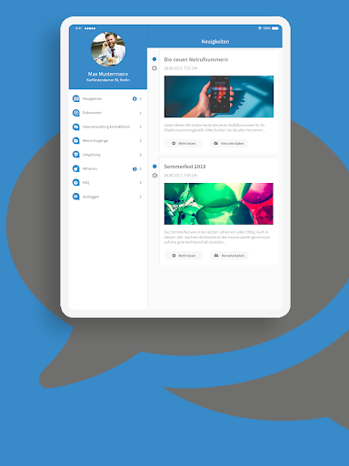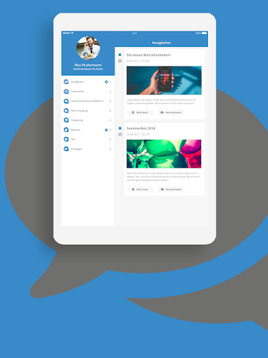 Darüber hinaus sind alle wichtigen Informationen rund um Ihre Wohnung in der App abgelegt. Von der Betriebskostenabrechnung über die Teilungserklärung bis zu den Protokollen und der Hausordnung. So haben Sie stets alles griffbereit, leicht verständlich und bedienerfreundlich. Starten Sie noch heute mit uns in die Zukunft!