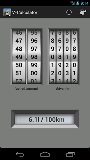 This application is a great help in calculating the fuel consumption per 100km. After entering the amount of fuel and the distance, the app calculates the fuel consumption per 100km, immediately.