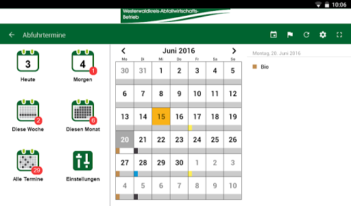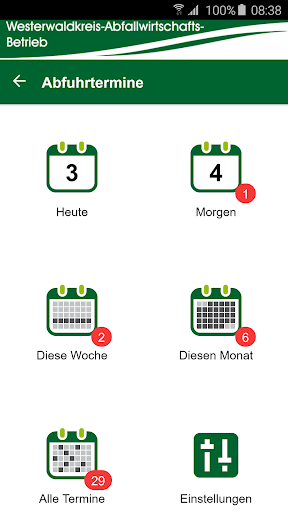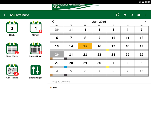 Aplikasi WAB WESTERWALD Circle Management Management Operations (WAB) menawarkan Anda kesempatan untuk mengatur semua tanggal pelepasan secara individual dan ingat pada waktunya untuk menyediakan jenis sampah yang sesuai atau tempat sampah. .