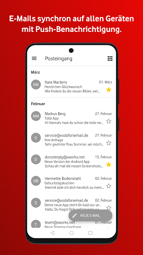 • आप ऐप में अपनी खुद की एड्रेस बुक बनाए रखते हैं।सभी डेटा वेब पर है (https://login.vodafonemail.de/) और आपका वोडाफोन ईमेल & amp;अपने स्मार्टफोन या टैबलेट पर क्लाउड ऐप सिंक्रनाइज़