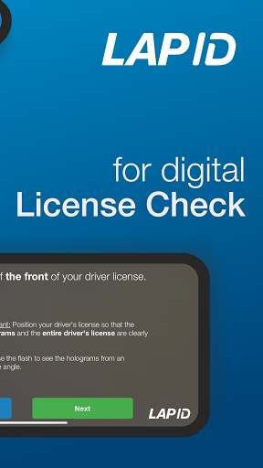 Take your driver's license and follow the instructions in the app. All communication with the LapID server is encrypted. The actual checking procedure is based on a multi-stage verficiation process. After completion of the checking process, the photo is deleted. Thus, the LapID Driver App meets the requirements of a visual inspection and makes it the first legally-compliant mobile solution in the field of license check.