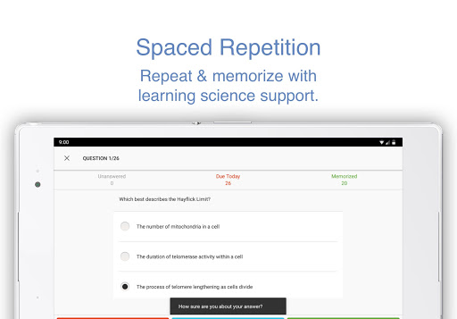- Spaced Repetition Quiz: reinforce knowledge, driven by a smart learning algorithm