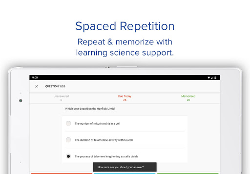 - Spaced Repetition Quiz: reinforce knowledge, driven by a smart learning algorithm