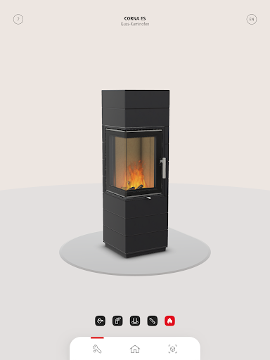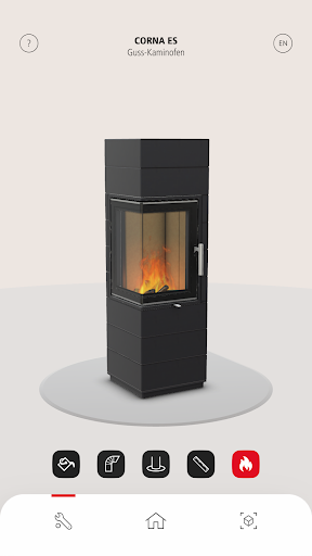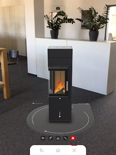 This free app for smartphones and tablets offers the opportunity to study our wood-burning stoves, as well as display them true to scale in any area of your home. The app shows options of how the stove looks like with e.g. a flue pipe, a spark protection or even a burning fire. Thus, you can easily decide, which wood stove is the right one for your home.