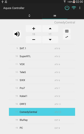 Besides this the App supports the typical remote control functions: volume up/down, channel up/down, video text on/off …