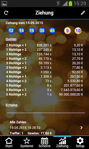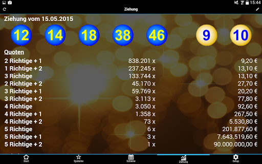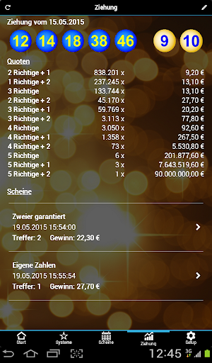 Dies ist die Light Version der EuroJackpot Systeme App. Verwalten Sie Ihre Tipps und Scheine, rufen Sie die aktuellen Gewinnzahlen und Quoten ab (Internetverbindung notwendig) und lassen Sie Ihre Tipps auf Treffer überprüfen.