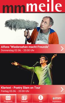 „Smartphone-App zur „Memminger Meile“, dem sommerlichen Kulturfest der Stadt Memmingen. Auf dem Festivalprogramm stehen Musik, Kabarett, Comedy, Ausstellungen und Straßentheater. Mit der App erhalten Sie jedes Jahr aktuelle Informationen zu den Veranstaltungen und zum Kartenvorverkauf.“
