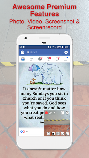 * Screen Record: Take a full video of your phone display with the screen recorder of the Overlay Camera.