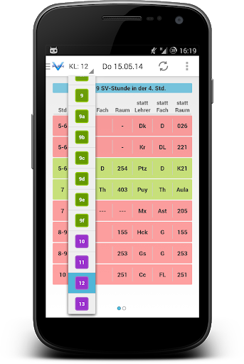 bietet eine übersichtliche Gliederung nach Klassen (in der seitlichen herausziehbaren Leiste) und Tagen (Wechslen dieser durch Wischen nach links und rechts).