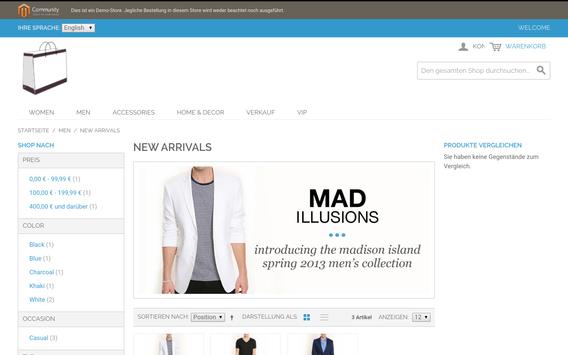 Dies ist eine Demo Version der Android Online Shopping App, mit der Online-Shop-Betreiber vor dem Kauf ihrer eigenen Online Shopping App die Funktionalität testen können.