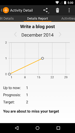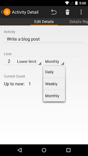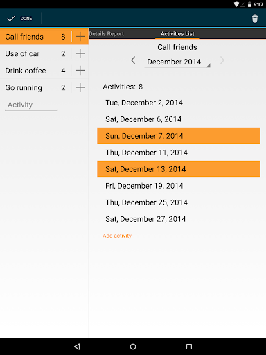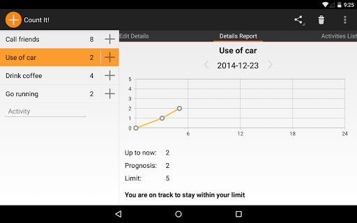 No matter if you want to reach a goal like going to the gym more often, or break a bad habit like eating the wrong stuff, this app is for you. You can keep track of these activities by simply pressing a button. Have a look at your progress in the reports tab and share your results with your friends.