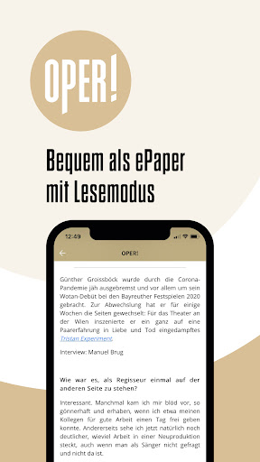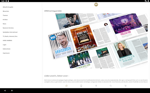 Avec l'opéra! Au dernier état et avoir accès à tous les contenus et nouvelles de l'opéra.Digital ou en tant qu'Epaper et toujours avec un mode de lecture confortable, des options pour l'élargissement de l'écriture, des signets définis et bien plus