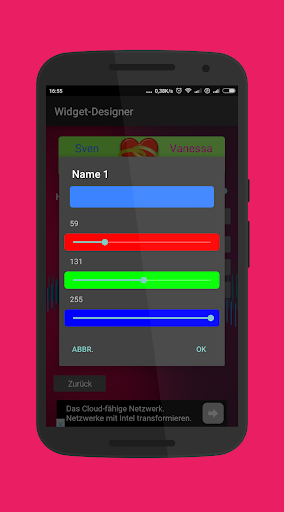 Du kannst die Farben der Namen, des Ergebnisses, des Hintergrundes und vieles mehr anpassen. Selbstverständlich kannst Du, nachdem Du das Widget schon auf Deinem Startbildschirm platziert hast, es nachträglich wieder ändern. Vielleicht mal mit einem neuen Icon?