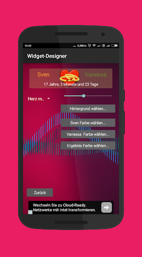 , Du hast richtig gelesen, es handelt sich nicht einfach nur um eine App, die Dir anzeigt, wie lange Du schon mit der Person Deines Herzens zusammen bist, sondern Du hast weiter noch die Möglichkeit Dein spezielles Widget anzupassen.