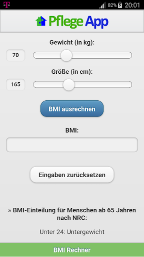 In vielen Pflegediensten wird der BMI der Kunden regelmäßig erfasst. Er lässt sich hiermit leicht ausrechnen.