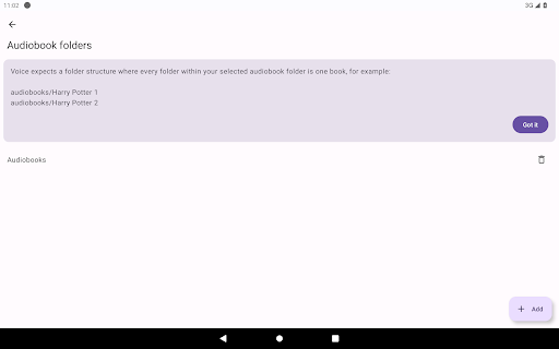 You simply add your main audiobook folder, and each folder in it is recognized as a single book. This keeps your library simple and uncluttered.