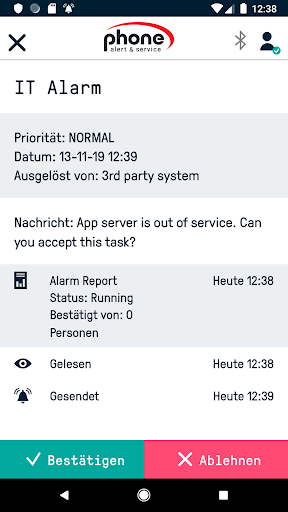 Mit der phone alert & service Mobile App lösen Sie zuverlässig, intuitiv und schnell Alarme aus und empfangen Meldungen in Echtzeit.
