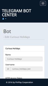 With the Telegram Bot Center you are able to create, change and program bots. We are currently working as quickly as we can, to get the site and this app online.