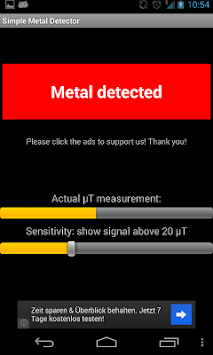 Simple metal detector that detects metal when you hold your mobile above metals. Can be used to find cables in walls before starting to drill holes! If light turns red there is a cable/metal!