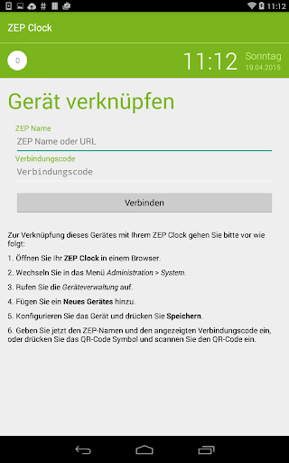 - einfachste Verknüpfung der ZEP Clock App mit ZEP Clock über QR-Code