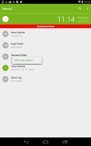 - Sicher: für jeden Mitarbeiter kann ein PIN-Code hinterlegt werden, der bei Anmeldung und Abmeldung eingegeben werden muss