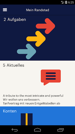 Với sự trợ giúp của ứng dụng "Mein Randstad", các quy trình điện tử có thể được vận hành thậm chí dễ dàng hơn.Ngoài việc ghi thời gian điện tử, các nhân viên sử dụng khách hàng có thể dễ dàng xem tài khoản ngày lễ và thời gian thông qua ứng dụng và đăng ký vắng mặt mới, truy cập bằng chứng tiền lương trực tuyến hoặc trò chuyện với nhà tư vấn giám sát.