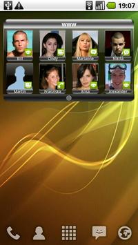 The quick dial or speed dial widget for your homescreen. Place this widget on your home screen, add your favorite contacts and call, message, view, e-mail or start a google talk chat with them with just one click - without opening the contacts app. And for the android 2.1 users: use the Quick Contact Badge to select an action in a moment!
