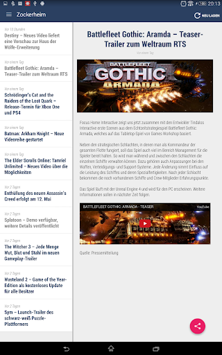 Die Zockerheim News-App im Material Design-Look bringt dir die Games-News von zockerheim.de auf dein Android-Phone oder -Tablet!