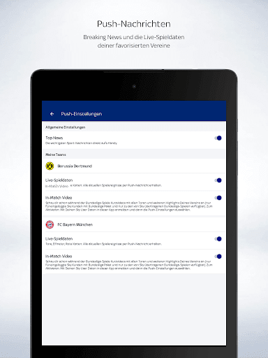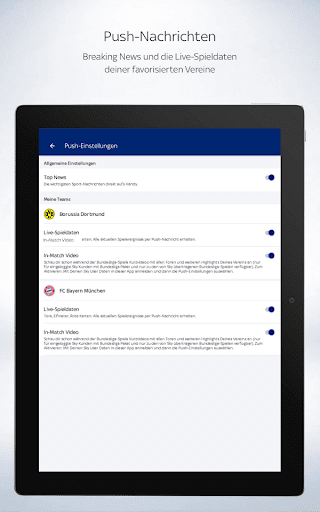 • Wähle Deine Lieblingsteams im Fußball und erhalte personalisierte News & Push-Nachrichten
