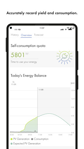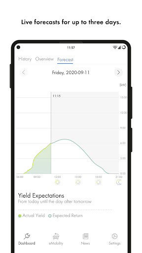In the optimization area, you can view current forecasts for solar power production. The app shows you how to use your energy even more sustainably. For example, you can automatically utilize your own, self-generated solar power as efficiently as possible for your own needs and reduce your grid-supplied power.
