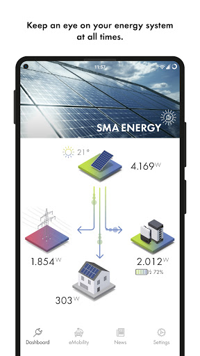 Thanks to the SMA Energy app, you can use your self-generated solar power from your SMA Energy System in a highly sustainable manner and optimize your energy budget. The app is your perfect companion for the energy transition at home and the mobility transition on the road.