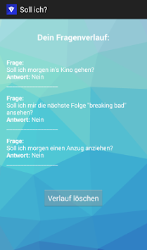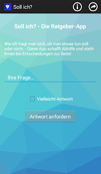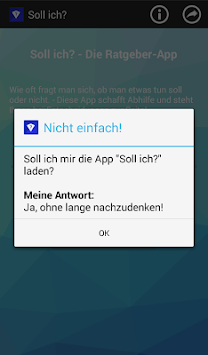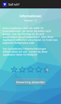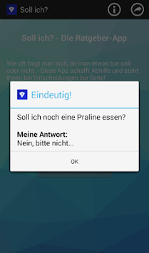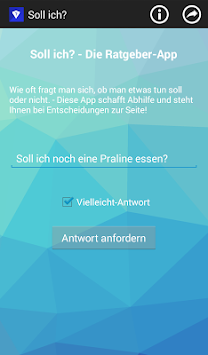 Wie oft stellt man sich Fragen, über die man den ganzen Tag grübeln könnte, wobei einfach nur eine simple Antwort benötigt wird. "Soll ich mein Date vom letzten Abend anrufen?", "Soll ich mir den neuen Fernseher kaufen?", "Soll ich trotz meiner Diät ein weiteres Stück Kuchen essen?" - solche Fragen können ganz schön viel Zeit kosten, insbesondere dann, wenn Pro oder Contra nicht überwiegt. Genau hier kommt die Applikation "Soll ich?" in's Spiel!