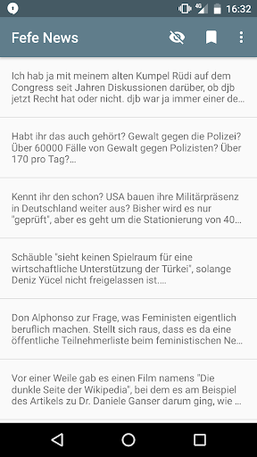 महत्वपूर्ण: यह एक अनौपचारिक ऐप है।सभी प्रदर्शित ब्लॉग पोस्ट Fefe ' के ब्लॉग से आते हैं, इसलिए मुझे सामग्री और विचारों पर कोई नियंत्रण नहीं है।