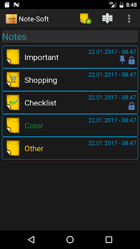 Note-Soft allows you to create notes, checklists and shopping lists and manage them.