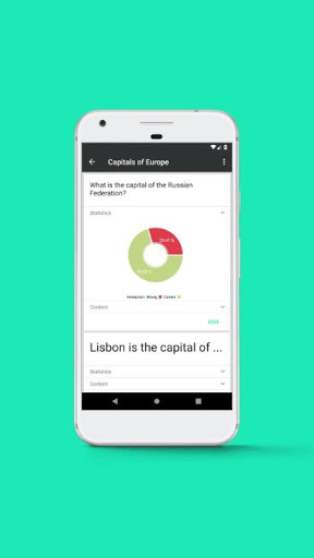 For each flashcard you can call up statistics, so you know exactly which flashcard you should look at.