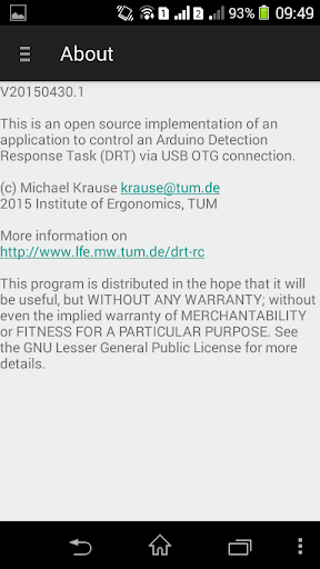 It is important to note and understand, that the app is (at the moment) a remote control and status display for the Arduino DRT setup: Therefore, no experimental data are stored in the app on the phone.