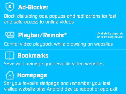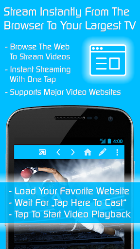 Video & TV Cast is the ultimate streaming browser app (10+ million users) to stream and watch web videos, online movies, livestreams and live tv shows on Chromecast, Samsung TV, LG TV, Sony TV, Hisense TV, Sharp TV, TiVo, Roku, Fire TV, DLNA and Google Cast / Android TV powered devices (TVs, media centers and gaming consoles).
