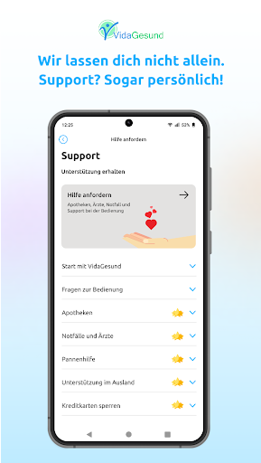 Bei allen Fragen zur Bedienung und für Vorschläge zur Verbesserung der App, steht Ihnen unser kostenloser, persönlicher Support zur Verfügung. Diesen erreichen Sie per Telefon unter der 49 7253-9590-939 oder unter support@vidagesund.de. Wir freuen uns auf den persönlichen Kontakt!